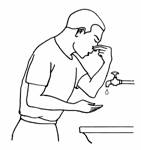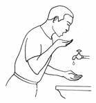 (用右手吸水到鼻中,然后用左手呛鼻为圣行)
