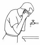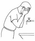 洗脸 (上自额发边下至颔下,两旁至耳,三次)